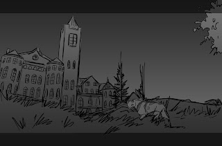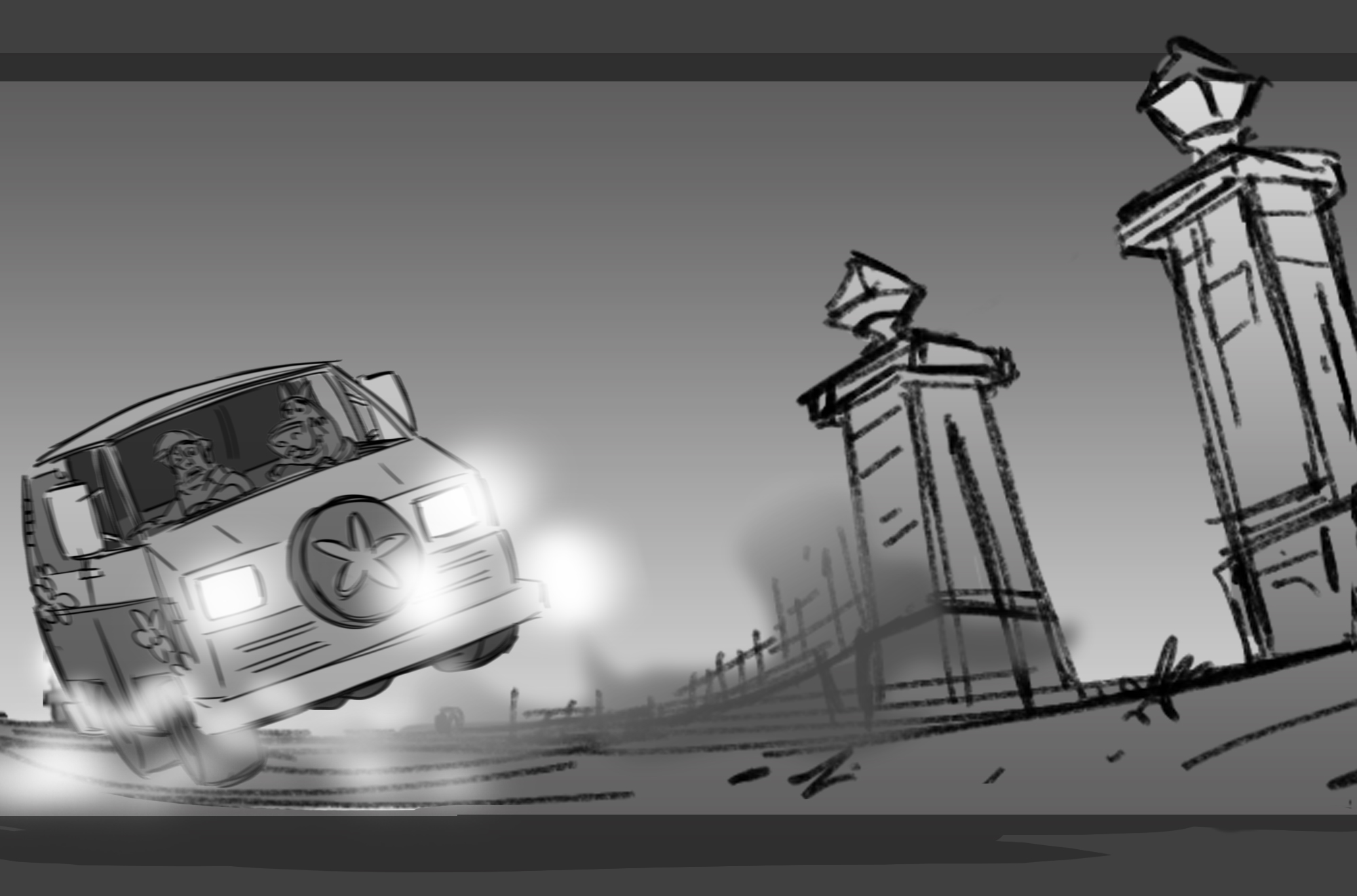 This was the first scene I drew on SCOOB! way back in autumn 2015. Originally, the gang had a quasi successful ghost hunting show on YouTube called “Debunk’d!” which was fast losing subs. Needing a hit episode to save their sponsorship deals, they investigate the Randolph Asylum for the Criminally Insane, only all is not as it seems...